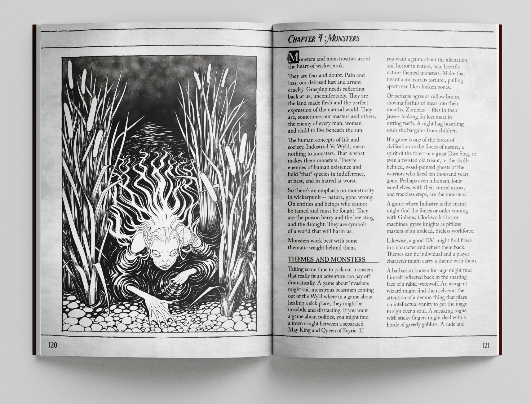 The rural, the pagan, the ancient, the sensual, the wyld. The true face of nature, red in tooth and claw. Wickerpunk is a book that details creating fantasy campaigns and adventures where the wyrd and wyld meet industry. Where nature and civilisation clash and dark hearts are laid bare.
